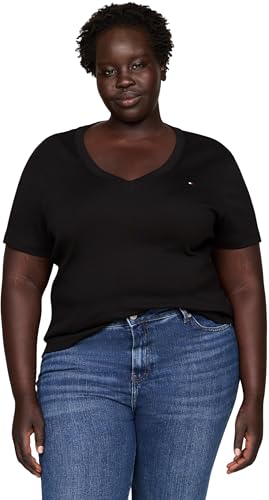 Tommy Hilfiger Women’s Short Sleeve V-Neck Slim Fit Cody T-Shirt, Black (Black), 18