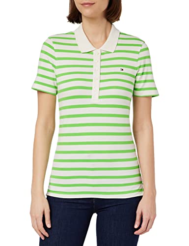Tommy Hilfiger Women 1985 Slim Piqué Short-Sleeve Polo Shirt Slim Fit, White (Breton Stripes W White/Spring Lime), XL