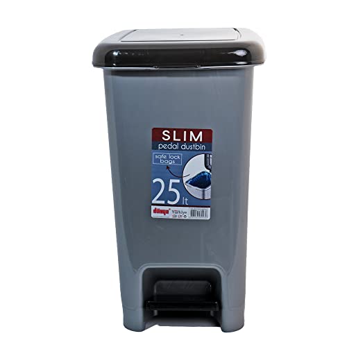 Anika 67859 25l Slim Pedal Bin/Recycling, Rubbish, Waste Kitchen Bin with Safety Lock / 38.5 x 27.5 x 47.5cm / Charcoal Grey Colour