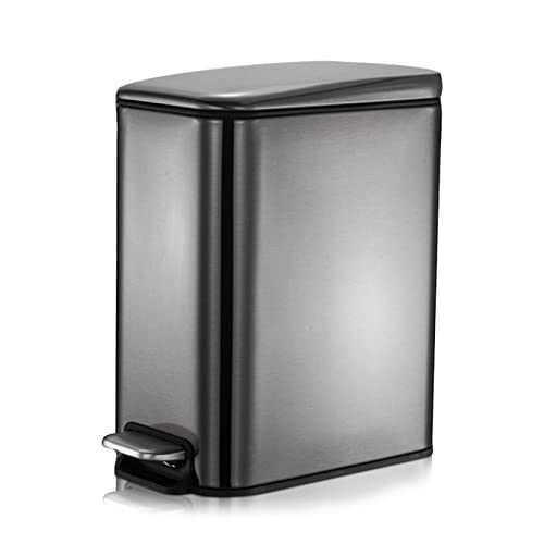 GONICVIN Bathroom Bin, Stainless Steel Pedal Bin Waste Bin with Lids, Slow Drop Closing Slim Rubbish Bin Pedal Waste Basket for Bathroom, Kitchen, and Office (10L, Black)