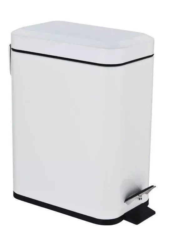Rectangular 5L White Slim Pedal Bin Kitchen Rubbish Waste Bin With Inner Bucket