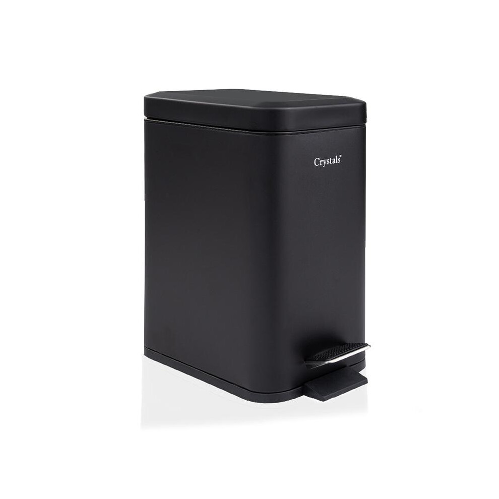 (Default) 5L Black Slim Rectangular Pedal Bin for Bathroom & Kitchen, with Soft - Closing Lid