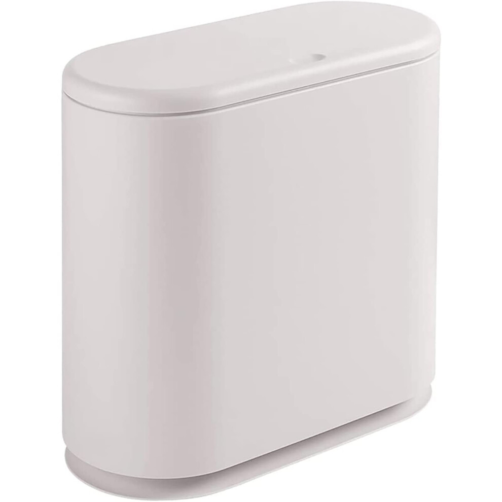 Oval Push-Type Trash Can with Clamshell Cover, Slim Plastic Pedal Bin for Narrow Spaces in Bathroom, Office, Kitchen, White