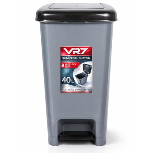 VR7 Slim Plastic Pedal Bin Home Bedroom Bathroom Kitchen Rubbish Dustbin (25L)