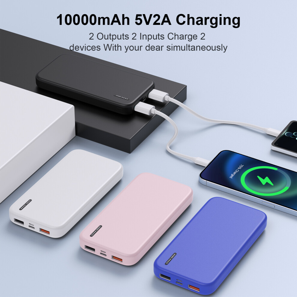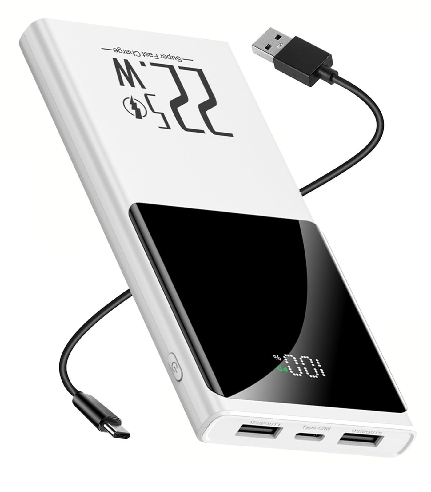 Slim Power Bank, 10000mah Fast Charging Portable Charger, PD 22.5W White