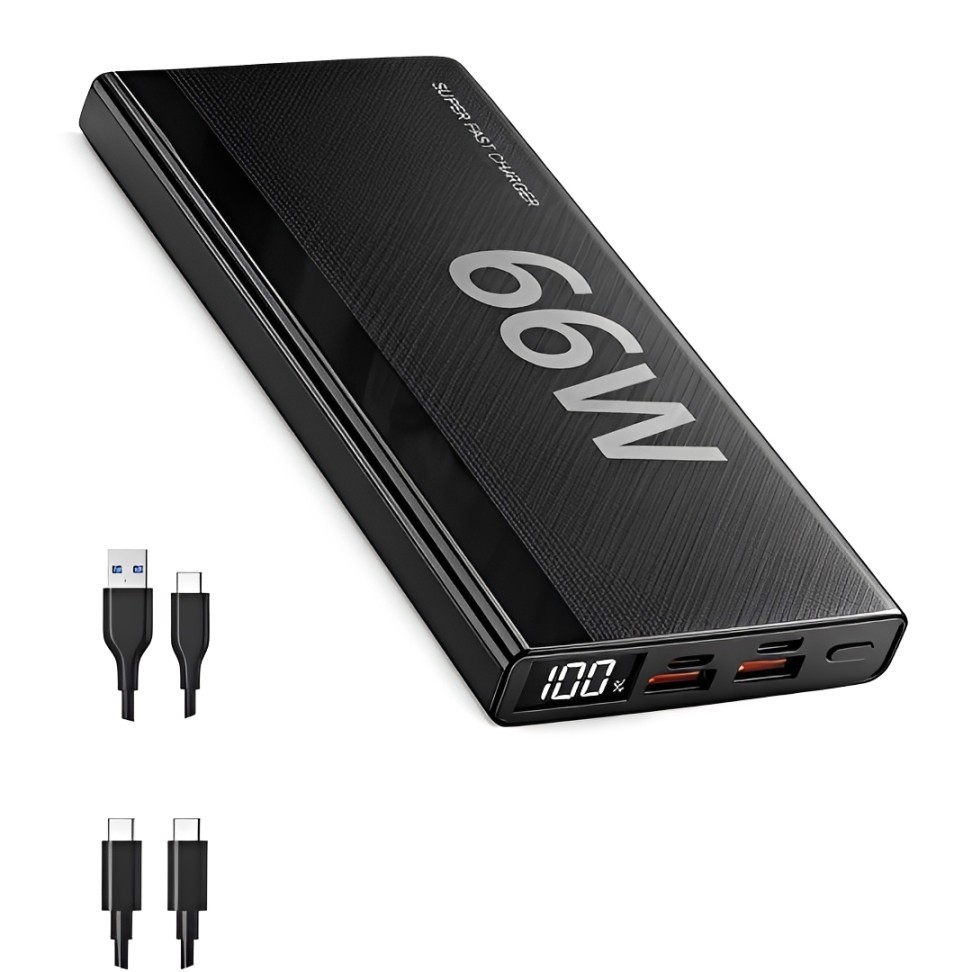 Slim Power Bank, USB-C Portable Charger 10000mAh &66W Power Delivery Slim Black