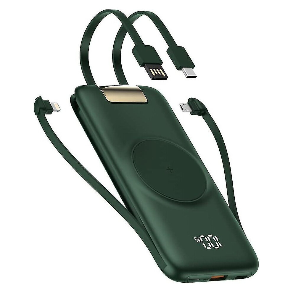 (Green, 10000mAh) Power Bank Wireless Charger Fast Charging, Power Bank With Built In Cable, 20000mah Ultra Slim Mobile Power Bank