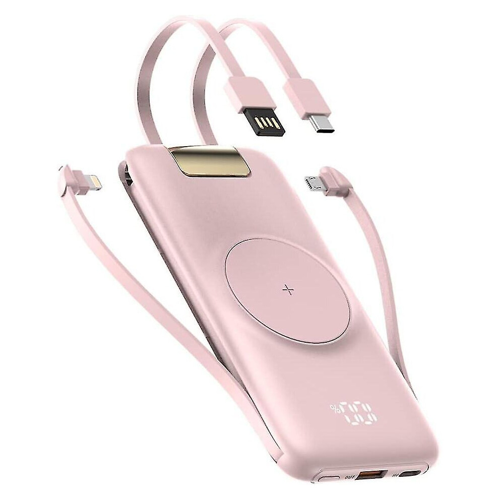 (White, 10000mAh) Power Bank Wireless Charger Fast Charging, Power Bank With Built In Cable, 20000mah Ultra Slim Mobile Power Bank