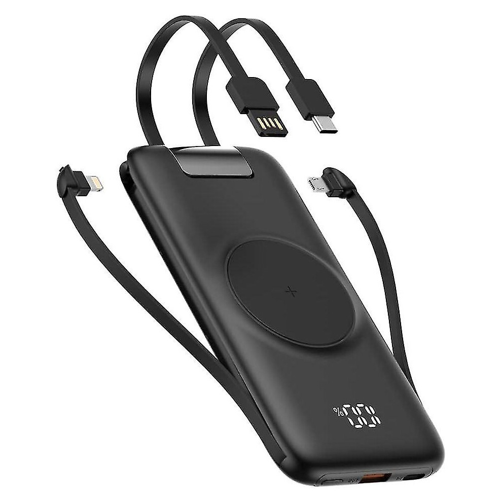 (Black, 20000mAh) Power Bank Wireless Charger Fast Charging, Power Bank With Built In Cable, 20000mah Ultra Slim Mobile Power Bank