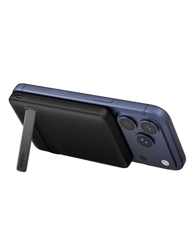 Belkin BoostCharge Portable Charger Qi2 15W, Slim Magnetic Power Bank 5000mAh with Kickstand, USB C Cable Included, Fast Charging Battery Pack for iPhone, AirPods, Galaxy, Pixel, iPad & More - Black