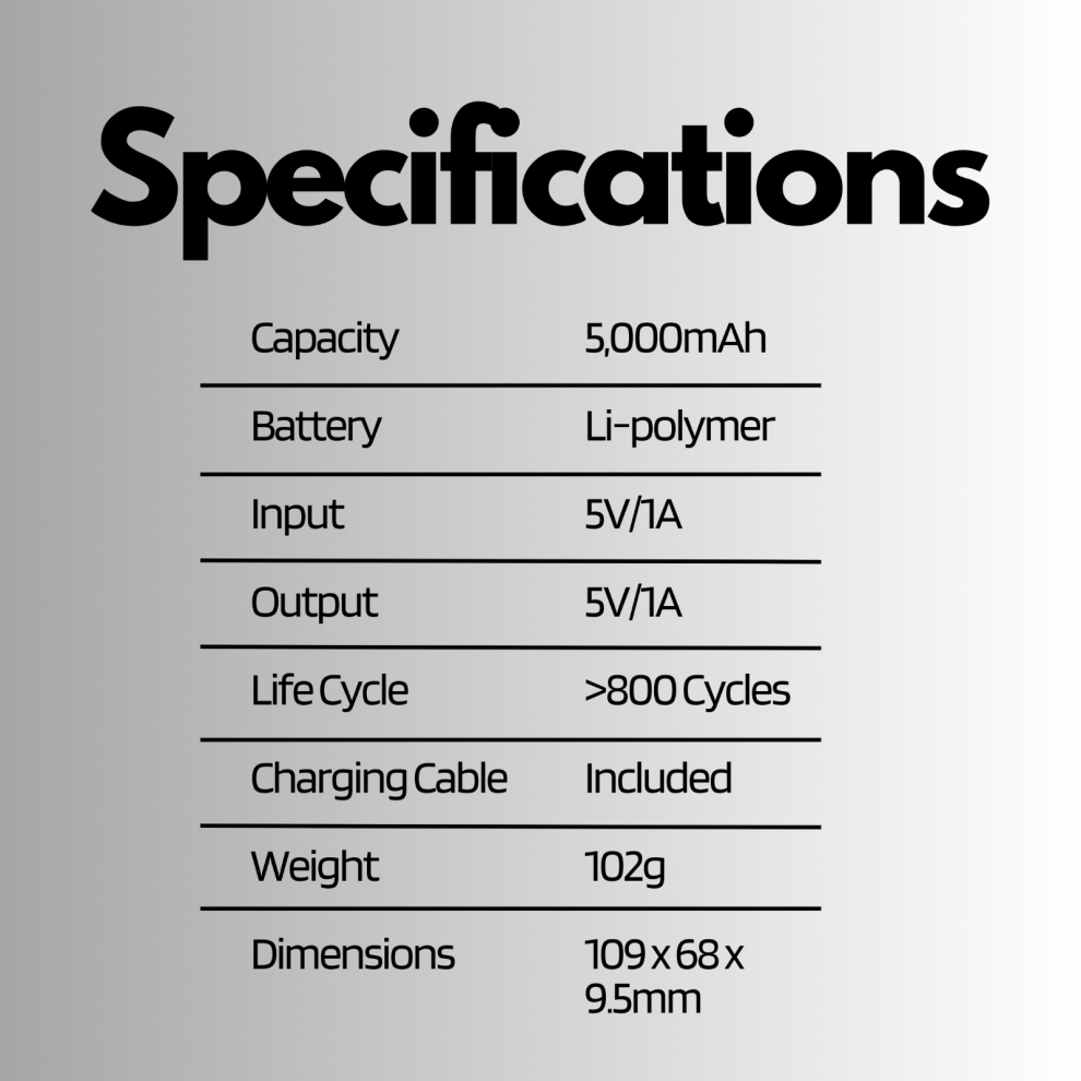 Slim Power Bank Battery Pack USB Charger 5V 2A For Travelling Rucksack Backpack
