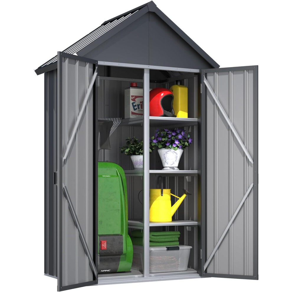 Tall Outdoor Garden Storage Cabinet with Double Door & 4 Adjustable Shelves, Metal Slim Shed for Garden Garage