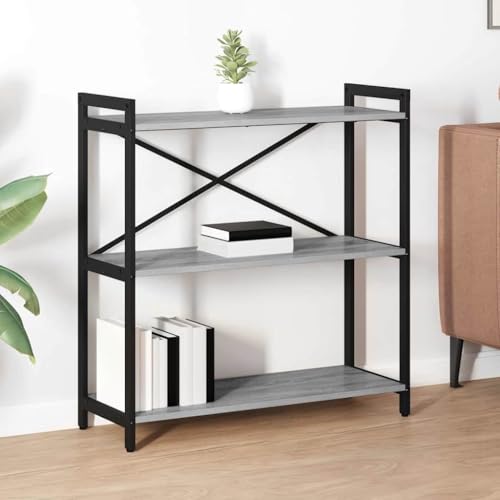 QJBSAVVA Grey Sonoma 80 x 30 x 85 cm Engineered Wood Bookshelf with Black Steel Frame, Slim Free Standing Shelving Unit, Modern Industrial Bookcase for Living Room, Study, Bedroom