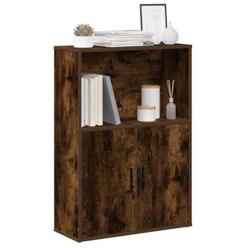 QJBSAVVA Bookcase Smoked Oak 60x24x85 cm Engineered Wood, Tall Slim Shelving Unit with Doors, Free Standing Living Room Storage Display Cabinet for Small Spaces