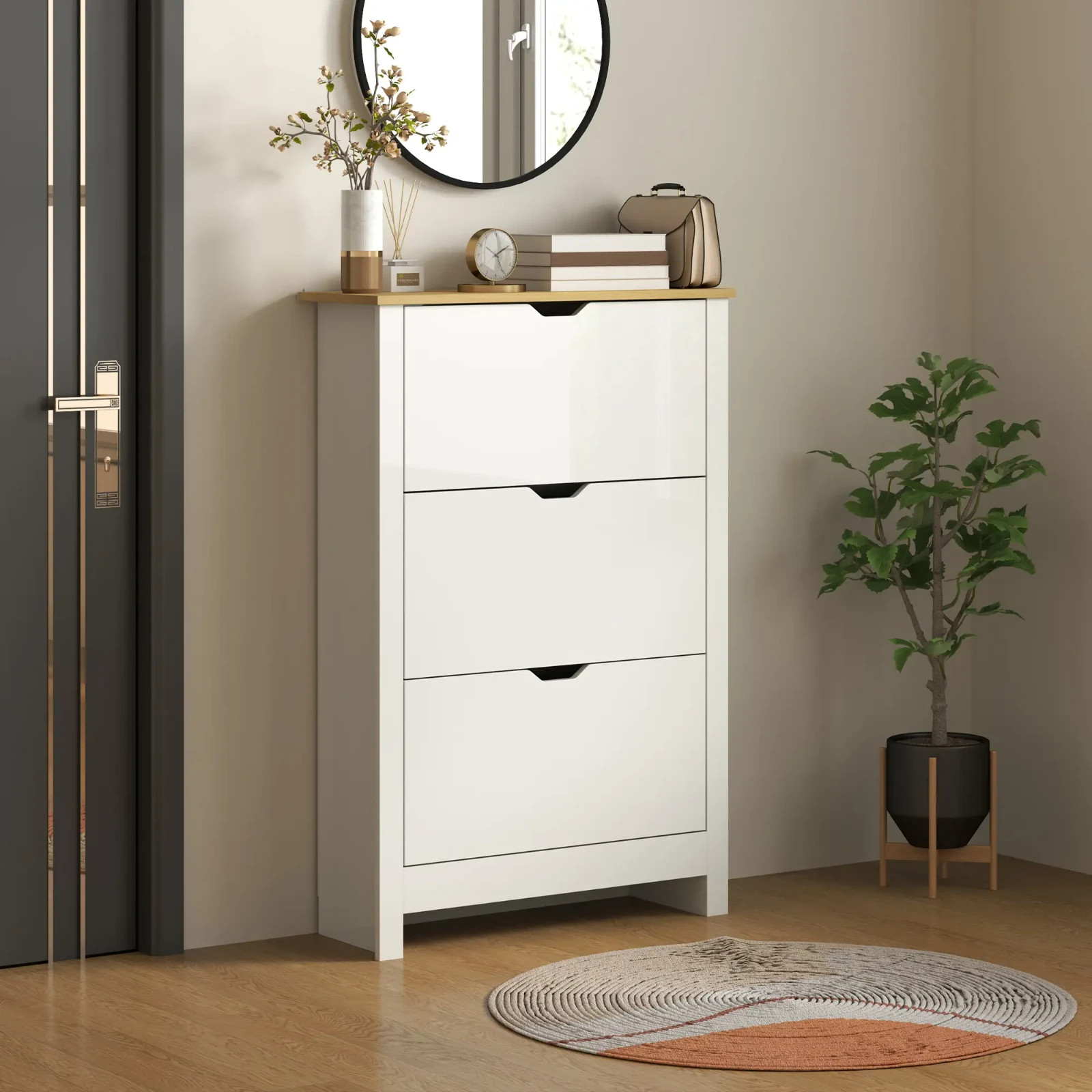 Slim Shoe Storage Cabinet Narrow Organizer Flip Drawers 3Doors Entryway Hallway