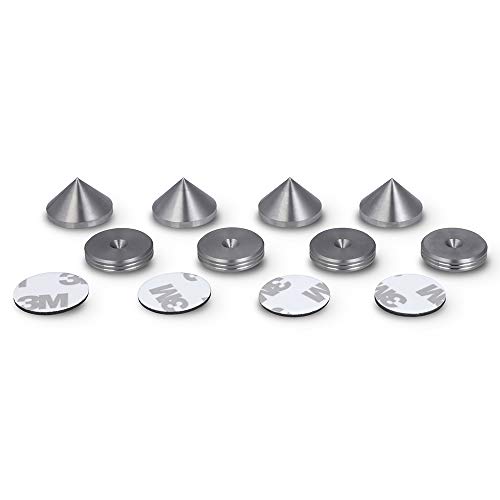 PrecisionGeek Stainless Steel Speaker Spikes & Pads – 20mm Diameter, Slim Design with Adhesive Mounts – For HiFi Speakers, AV Stands, Soundbars – Set of 4 Cones and 4 Pads