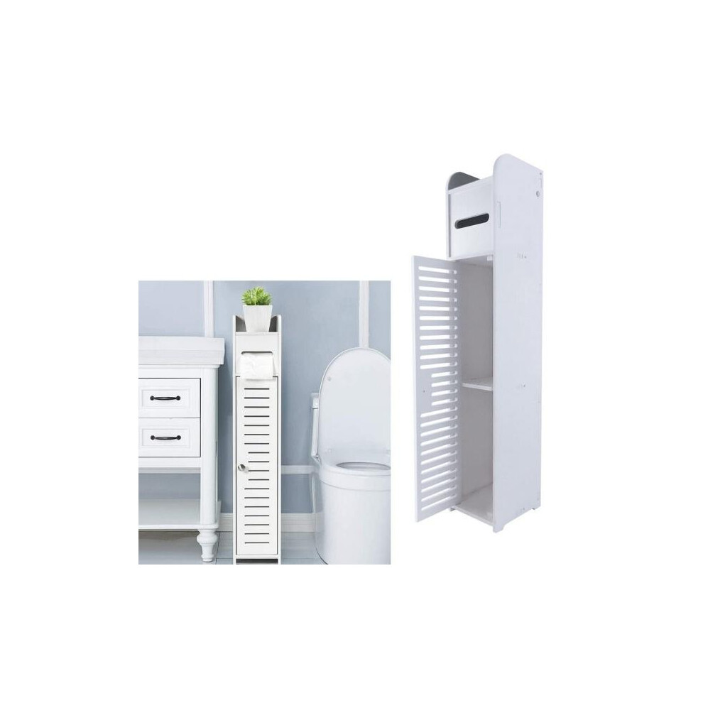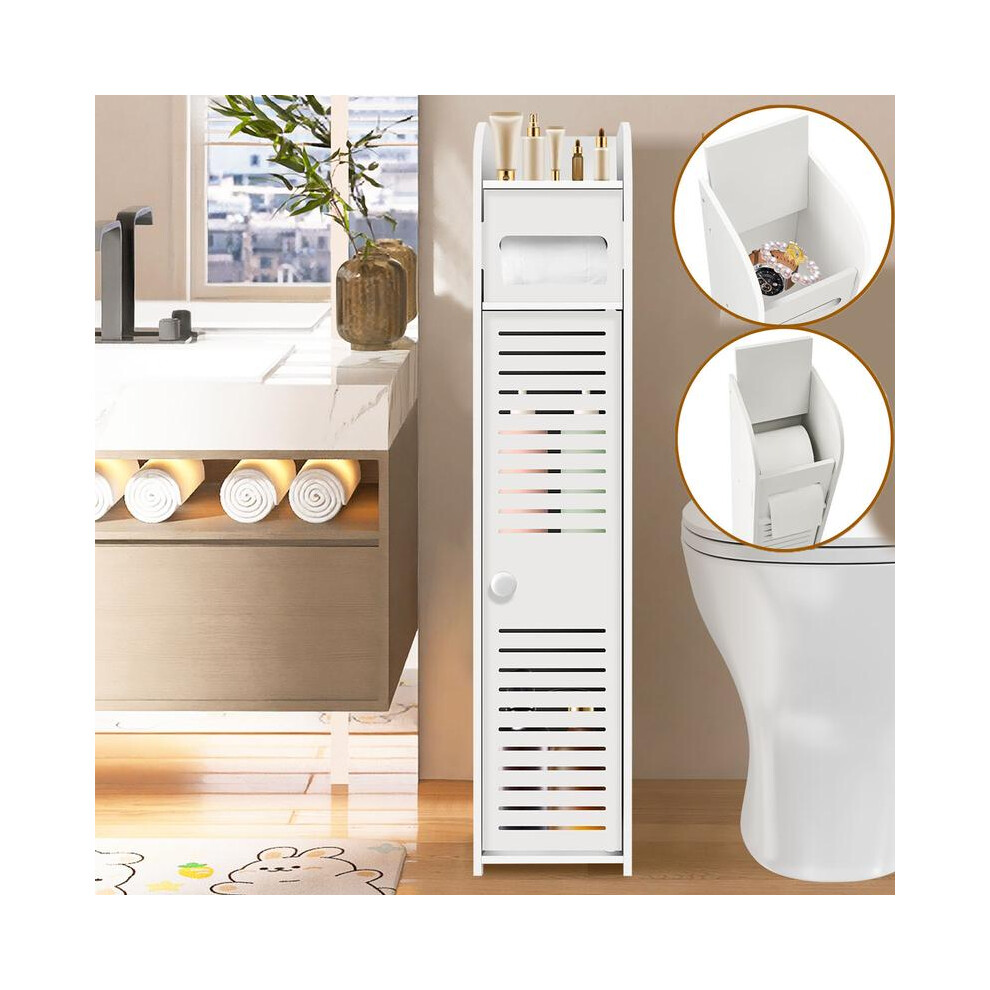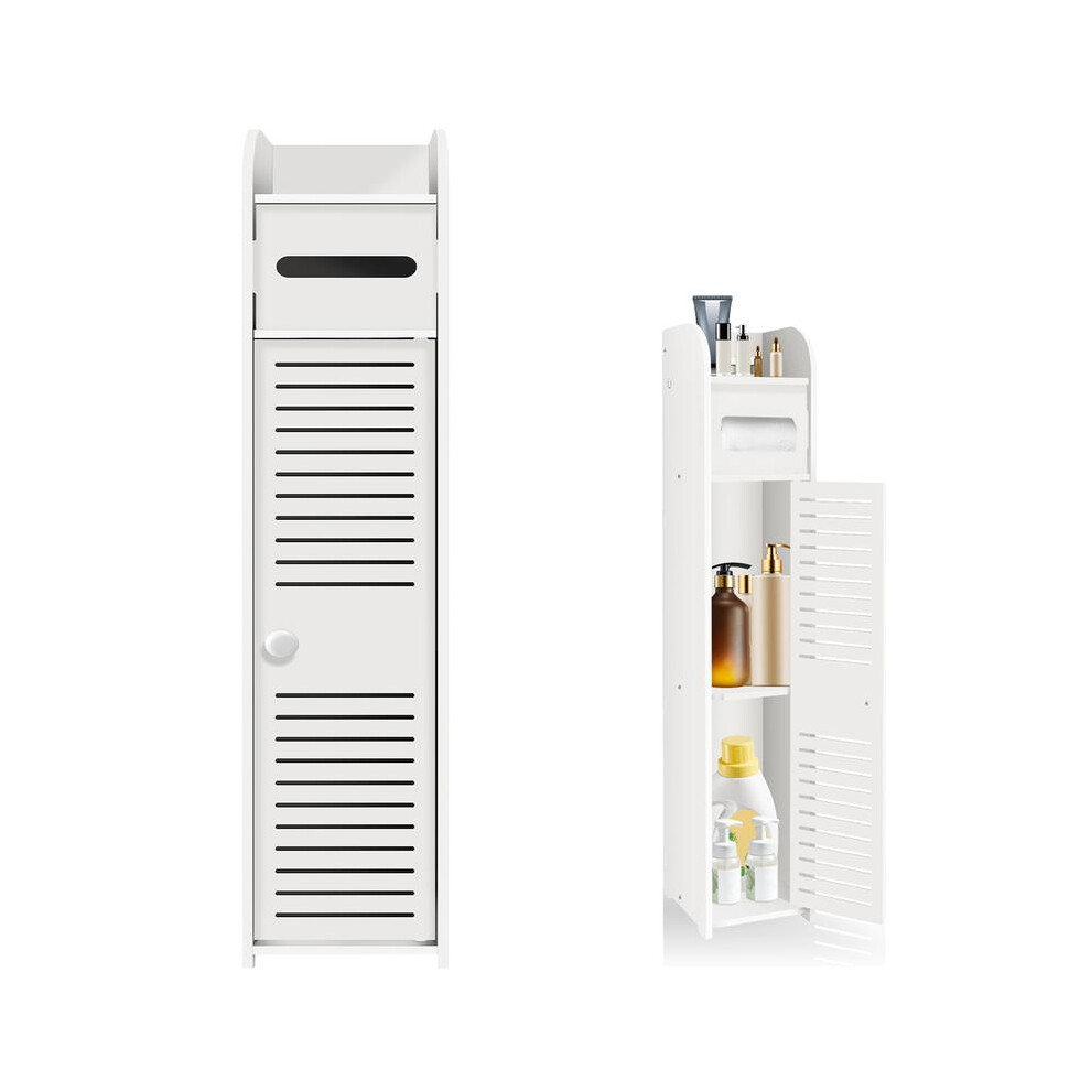 Free-standing Tall Bathroom Floor Cabinet, Waterproof Bathroom Cabinets, Bathroom Cabinet Bathroom Storage Slim Shelf Cupboard, Toilet Tissue Cabinet with Paper Roll Holder & Door for Bathroom, White