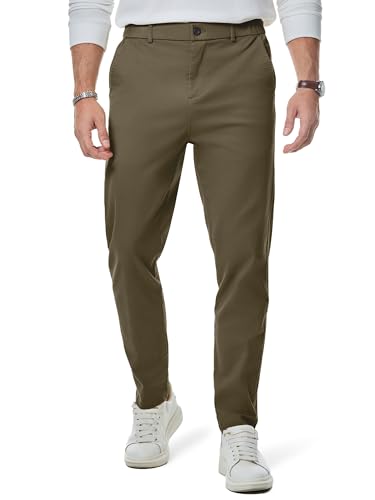 JMIERR Mens Chinos Trousers Slim Fit Pants Casual Stretch Waist Tapered Trousers with Pockets,Moss Green,S