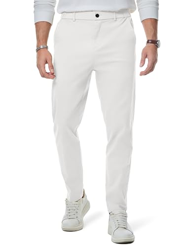 Elegancity Mens Chino Trousers Slim Fit Tapered Leg Dress Pants Cotton Twill Chinos Smart Casual Stretch Pants with Pockets White, L