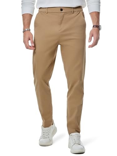 JMIERR Mens Chinos Trousers Slim Fit Pants Casual Stretch Waist Tapered Trousers with Pockets,Khaki,S