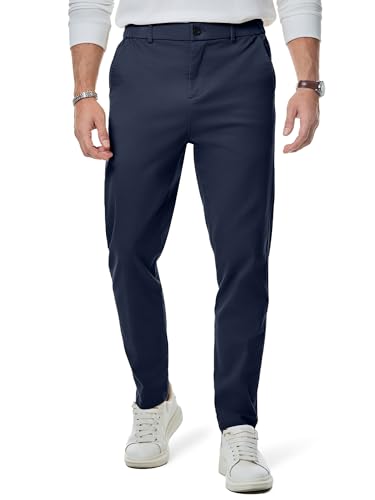 JMIERR Mens Chinos Trousers Slim Fit Pants Casual Stretch Waist Tapered Trousers with Pockets,Navy Blue,XL