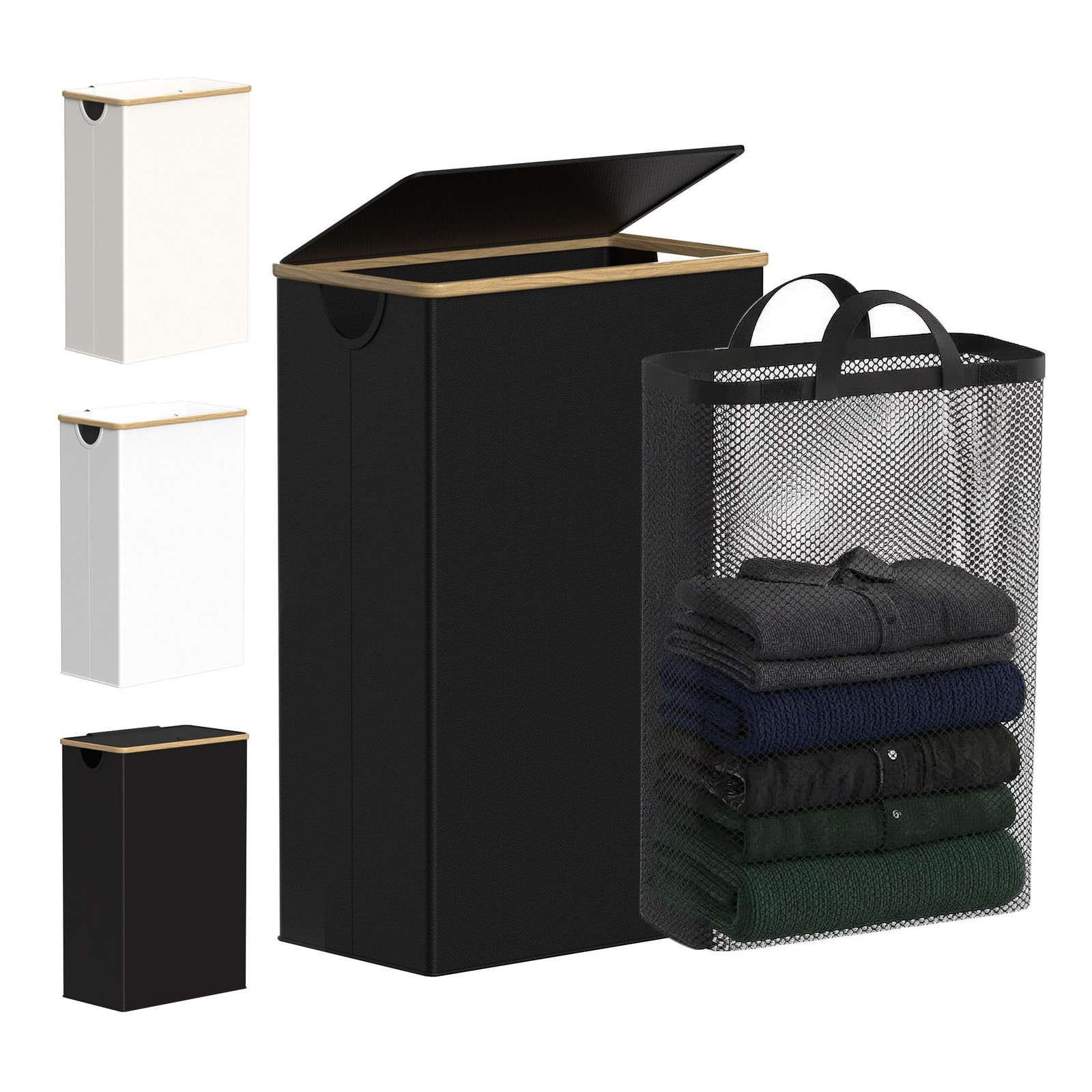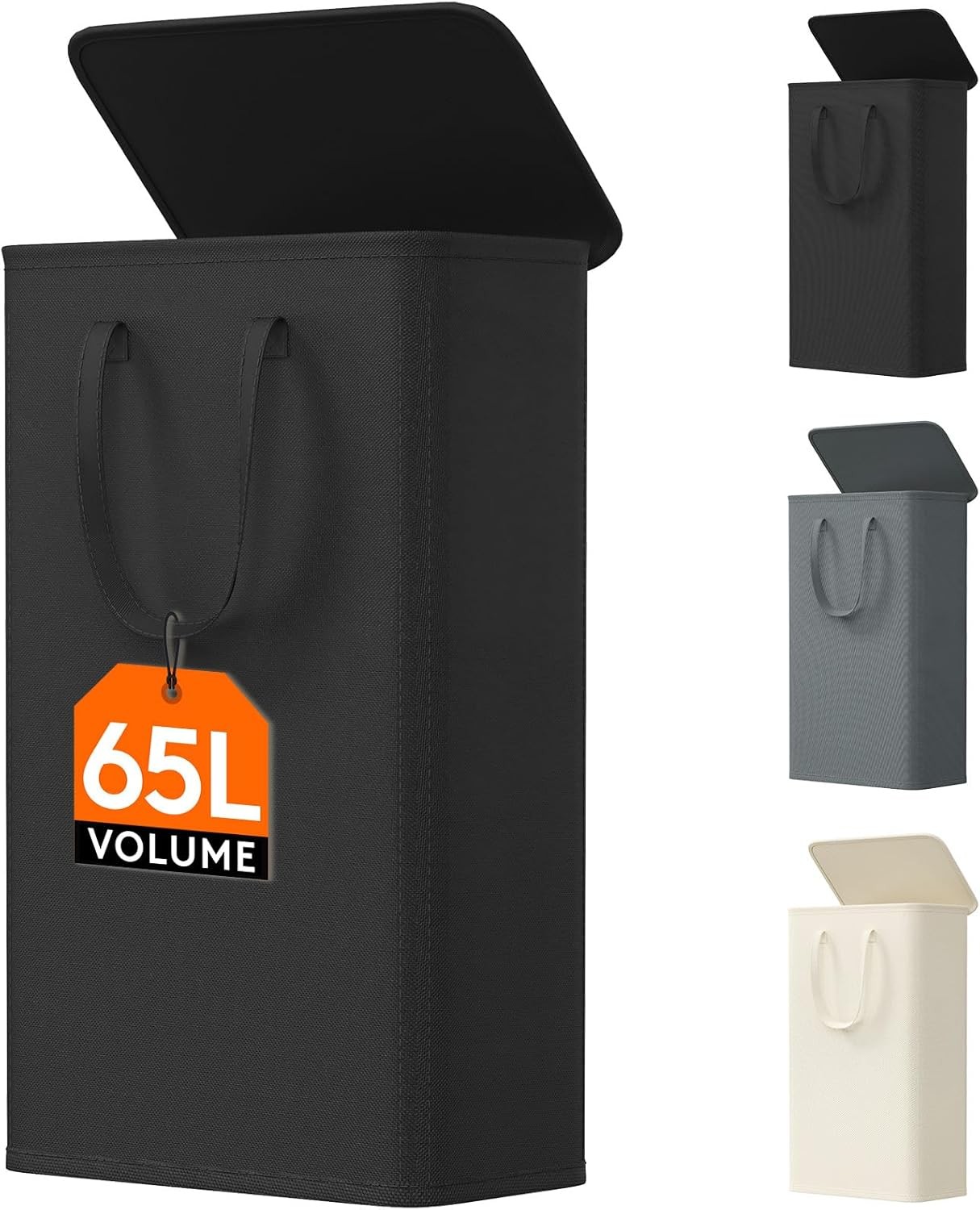 Lifewit 65L Slim Laundry Basket with Lid, Small Washing Basket, Narrow Foldable Laundry Bag with Handles, Thin Laundry Hamper Bin Storage for Bedroom Accessories, Black
