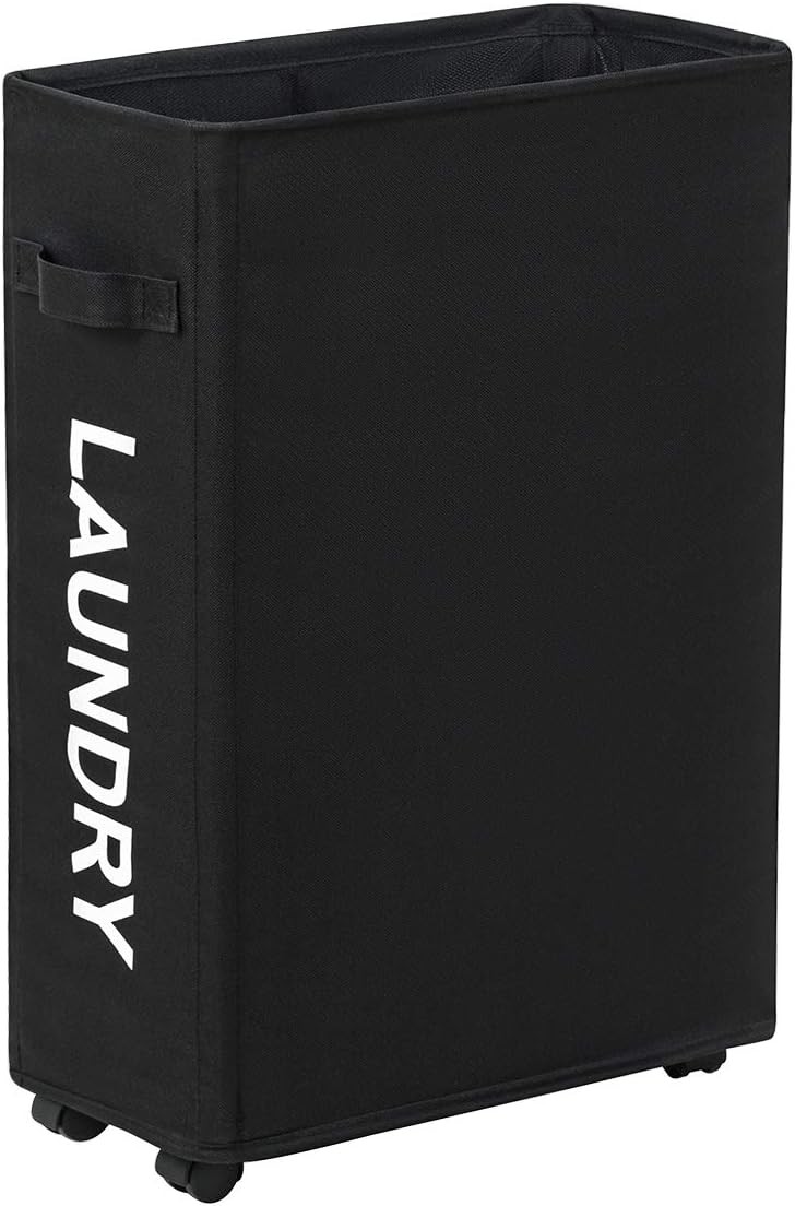 45L Laundry Basket Rolling Slim On Wheels Waterproof Washing Bin Hamper Black