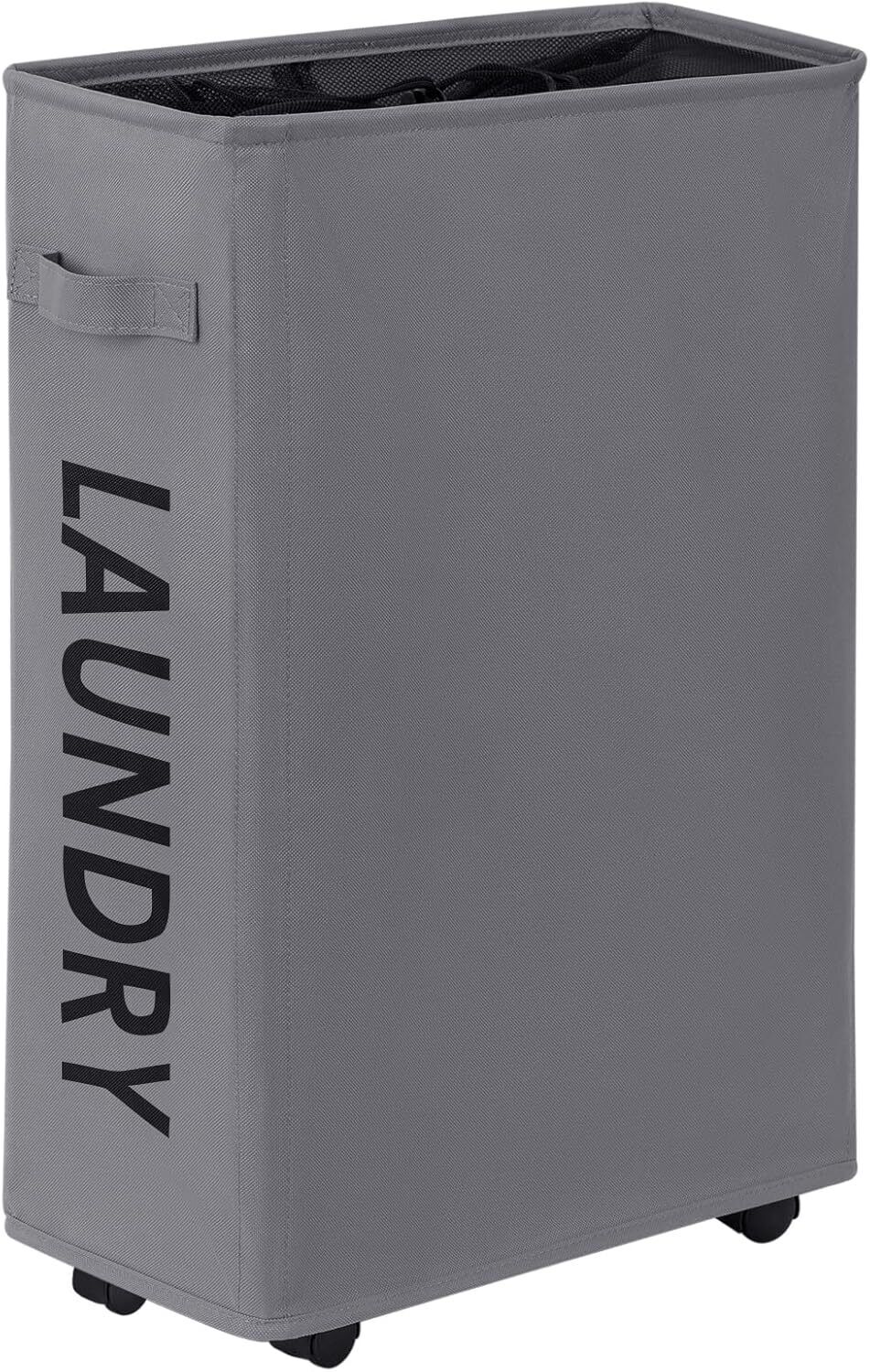 Laundry Basket Rolling Slim On Wheels Waterproof Washing Bin Hamper Dark Grey