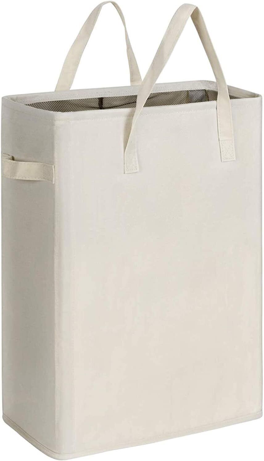 Lifewit 65L Slim Laundry Basket with Lid, Small Washing Basket, Narrow Foldable Laundry Bag with Handles, Thin Laundry Hamper Bin Storage for Bedroom Accessories, White,