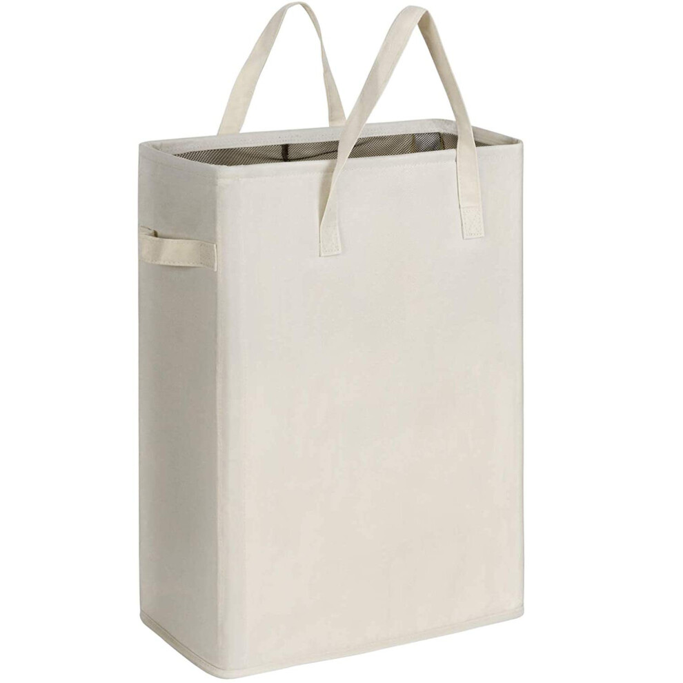 Chrislley Slim Laundry Basket Small Foldable Laundry Hamper Collapsible Washing basket Durable Laundry Bin with Handle(45L,Beige)