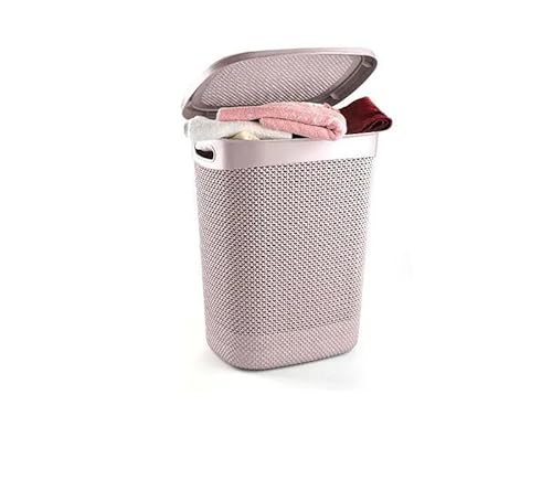 52L,50L,43L & 9L Plastic Slim Lid Bin Laundry Basket Clothes Washing Hamper Organiser Storage Container (52L Drop Design Potty Pink)