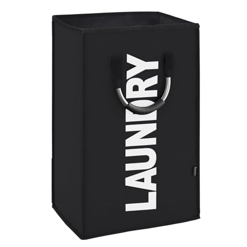 Caroeas 50L Collapsible Laundry Basket, Foldable Waterproof Washing Basket with Handles, Slim Laundry Bin for Laundry Room Bedroom (Black)