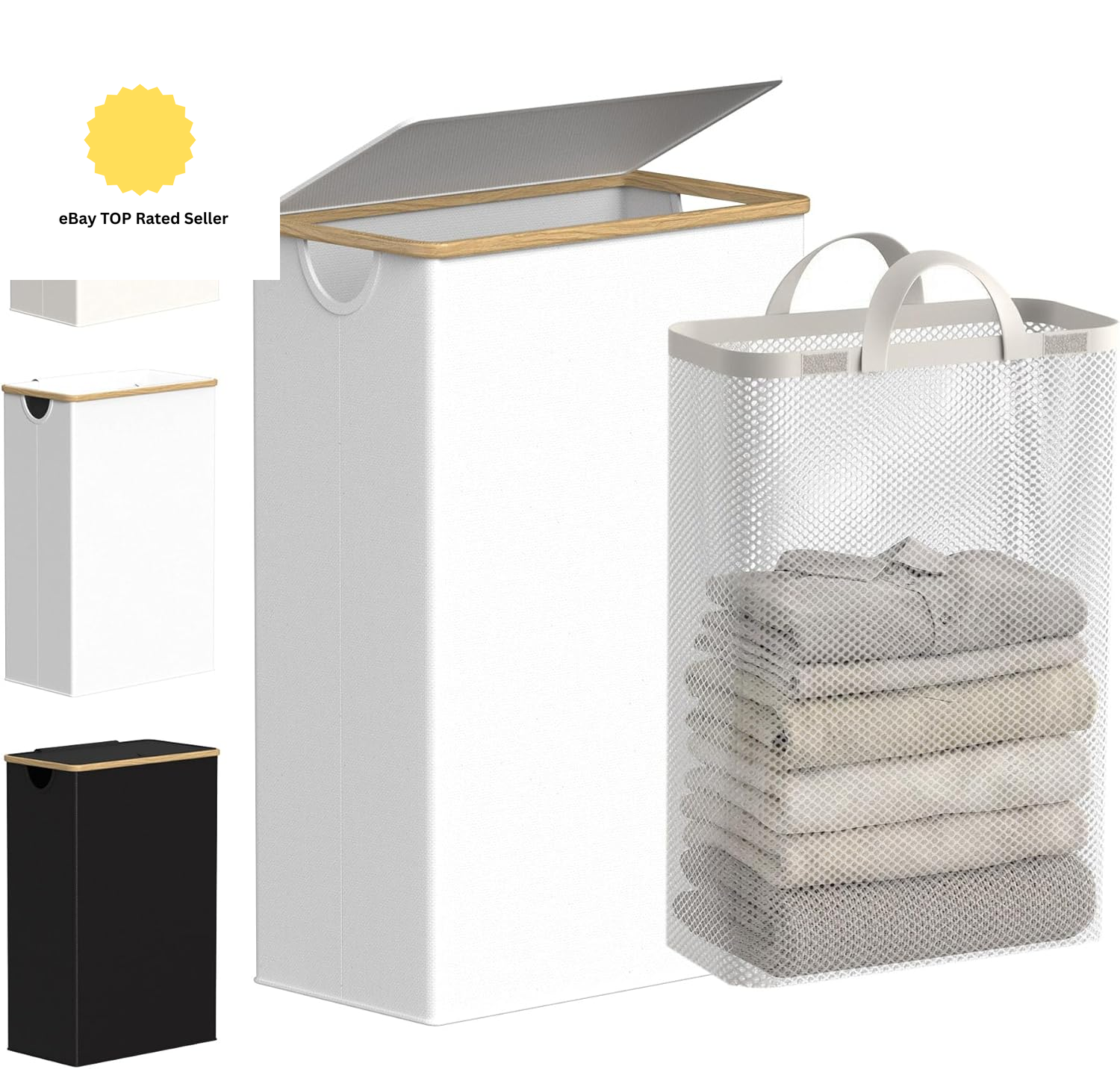 Lifewit 75L Laundry Basket with Lid, Slim Washing Basket with Handles and Bag,