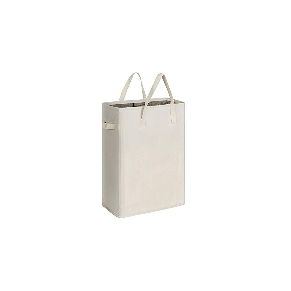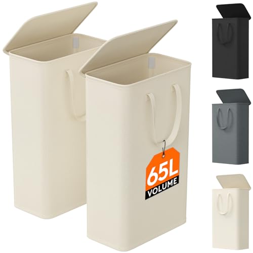 Lifewit 65L Slim Laundry Basket with Lid, Small Washing Basket, Narrow Foldable Laundry Bag with Handles, Thin Laundry Hamper Bin Storage for Bedroom Accessories, White, 2 Packs