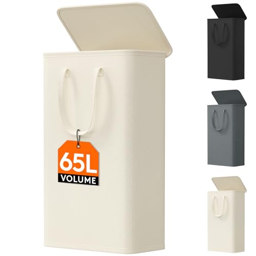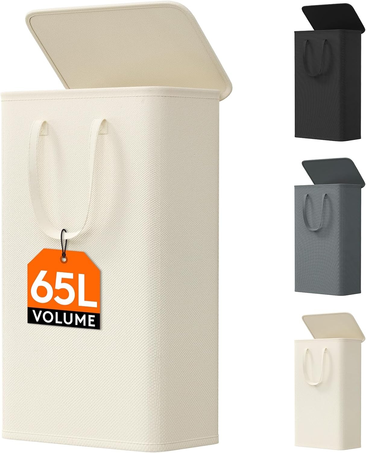 Lifewit 65L Slim Laundry Basket with Lid, Small Washing Basket, Narrow Foldable