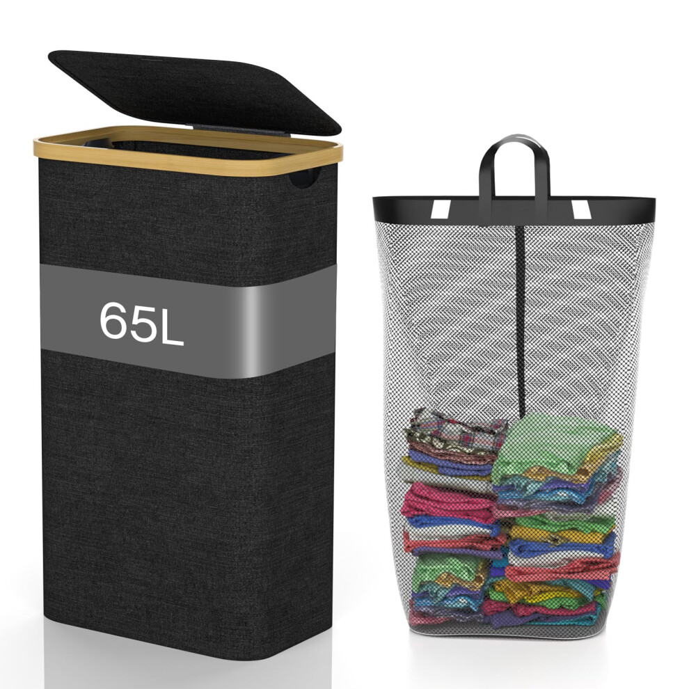 Washing Basket for Laundry, 65L Slim Laundry Basket with Removable and Washab...