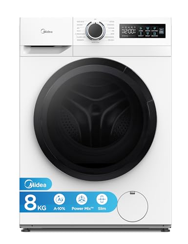 Midea Freestanding 8 KG Front Load Washing Machine Slim,A-10% Class,Steam Wash,Turbo Quick Wash,Durable Inverter BLDC,1400 RPM,White-MF110W80BA10/W-UK