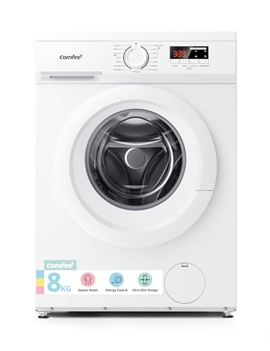 COMFEE' Freestanding Washing Machine,8KG Load,1400RPM,Steam Wash,Slim Design,Quick Wash,BLDC Durable Inverter Motor,White-CFE12EW80/W