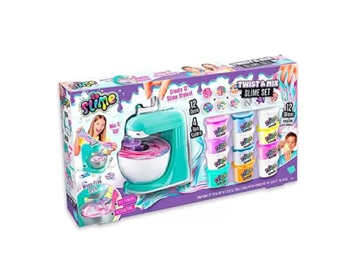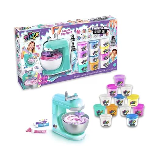 Twist & Mix Slime Set for Kids (Ages 6+) – Real Spinning Mixer to Create Colourful Marble & Swirl Slimes – Includes 12 Slime Pots, 4 Dye Powders, Decorations & Sticker Sheets – DIY Sensory Slime