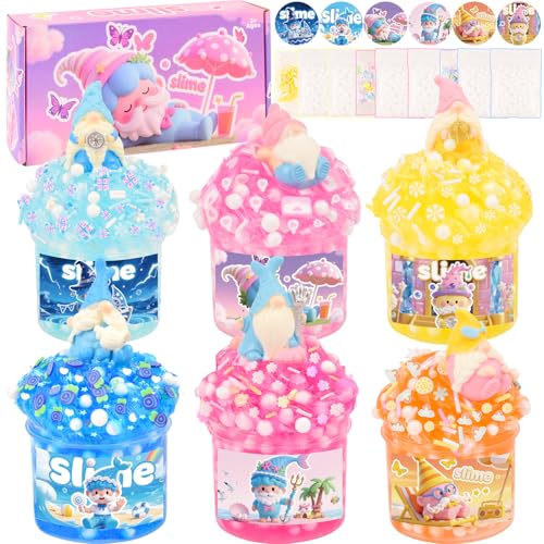 Crunchy Slime Set 6 Packed for Kids,Super Soft and Non-Sticky Stress Relief Clear Slime Kit Toy,DIY Butter Slime Party Favor for Girls