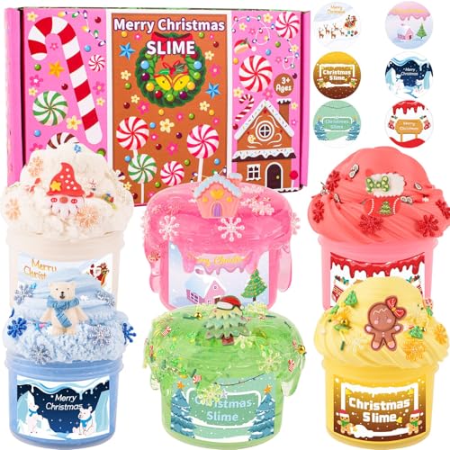 Christmas Stocking Stuffers for Kids-6 Pack Fluffy Slime Set, Xmas Gift Toys Kit, Party Favors, Goodie Bag fillers, Halloween Slime, Classroom Rewards for Teens Girls Boys Ages 4 5 6 7 8 9 10 11 12
