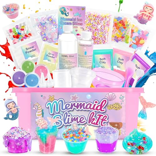 iKidiki Slime Kit, 6 7 8 9 10 11 Year Old Girl Gifts Slime Making Kit for Girls Toys for 6-12 Year Old Boys Girl Craft Kits for Kids Age 6-12 for Kids Make Your Own Ice Cream Slime Set