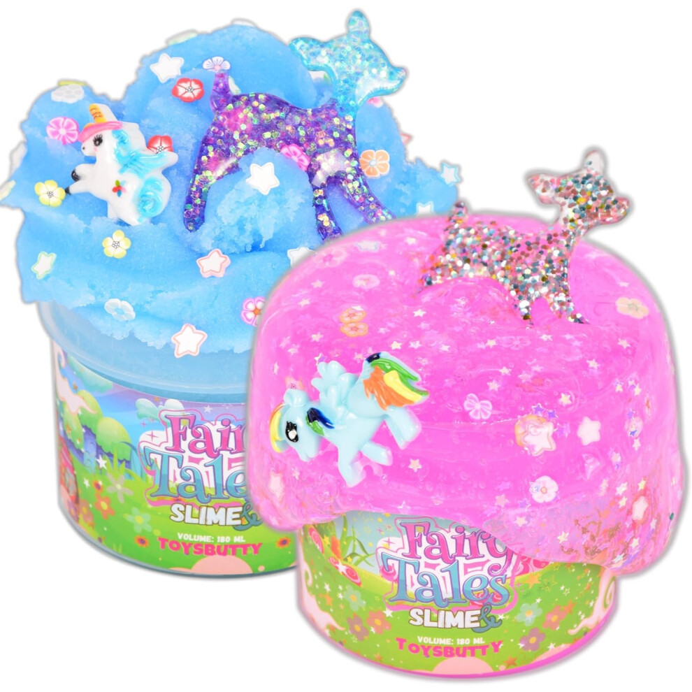 ToysButty 2 Slime Pack Clear Crystal Slime & Cloud Slime Kit for Girls Boys Create with Kids Fairy Tales Theme Premade Slime Making kit 8