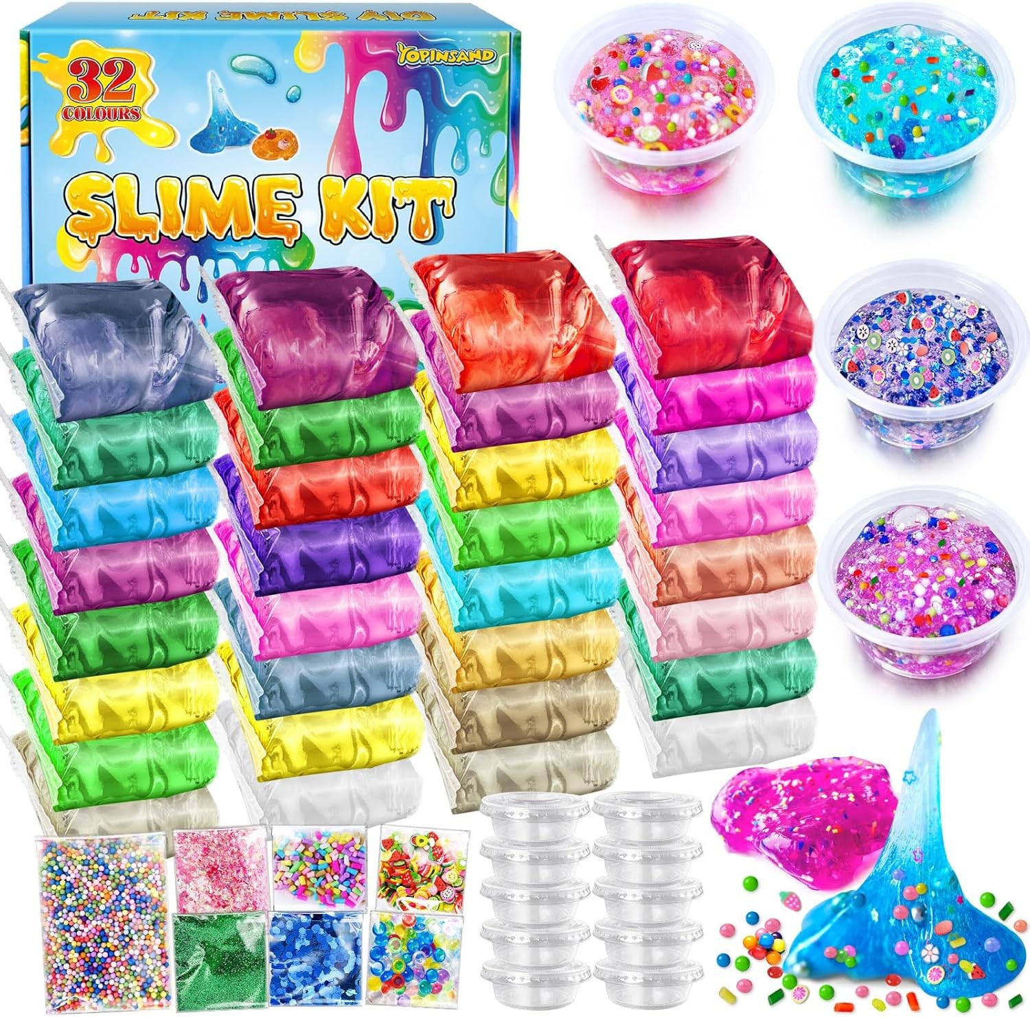 YOPINSAND 32 Cups DIY Slime Kit, Slime Making Kit for Girls 10-12, Glow in The Dark, Crystal Clear Slime with Add-ins, Foam Balls, Charms, Party Favors Gift Toys for Kids
