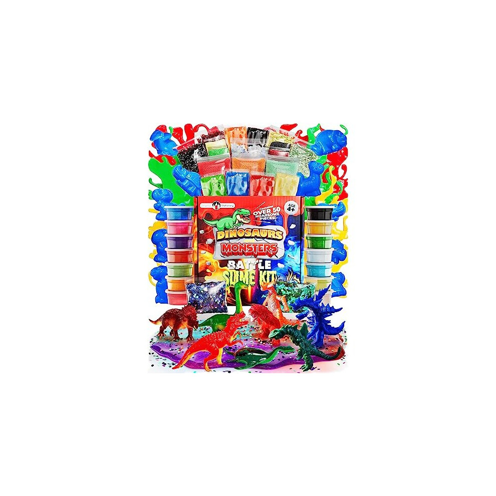 Original Stationery Dinosaur and Monsters Battle Slime Kit, Slime Set with 14 Premade Kids Slime, Fun Dinosaur Toy Moulds, and Dinosaur Toys for Boys
