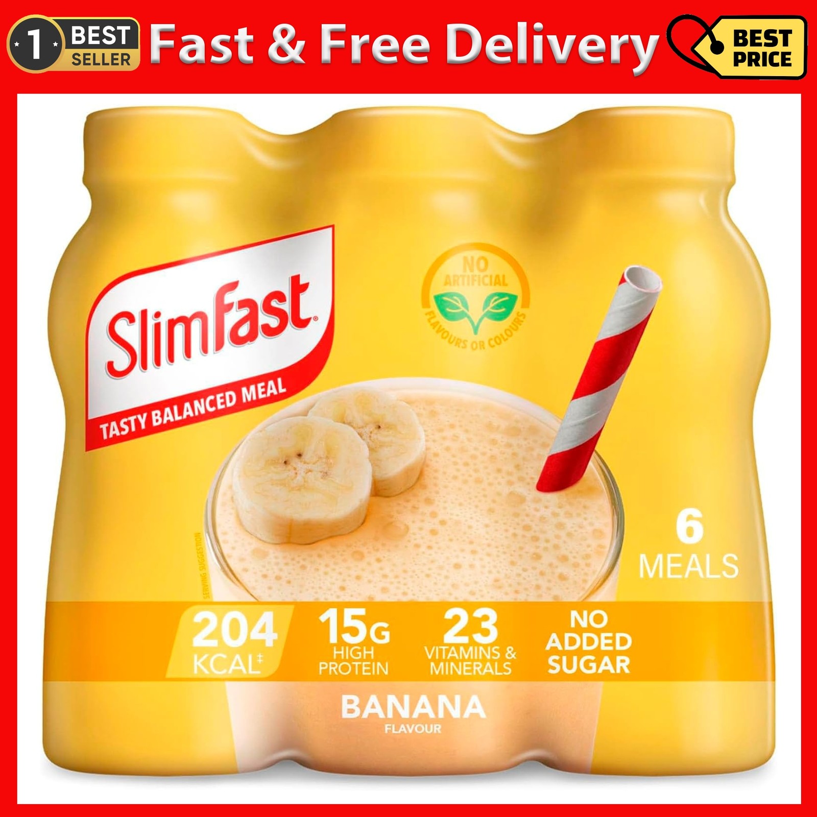 SlimFast Drink Shake Replacement Weight Loss Diet High Protein Vitamins Minerals No Added Sugar Strawberry Flavour 6 x 325 ml Packaging May Vary