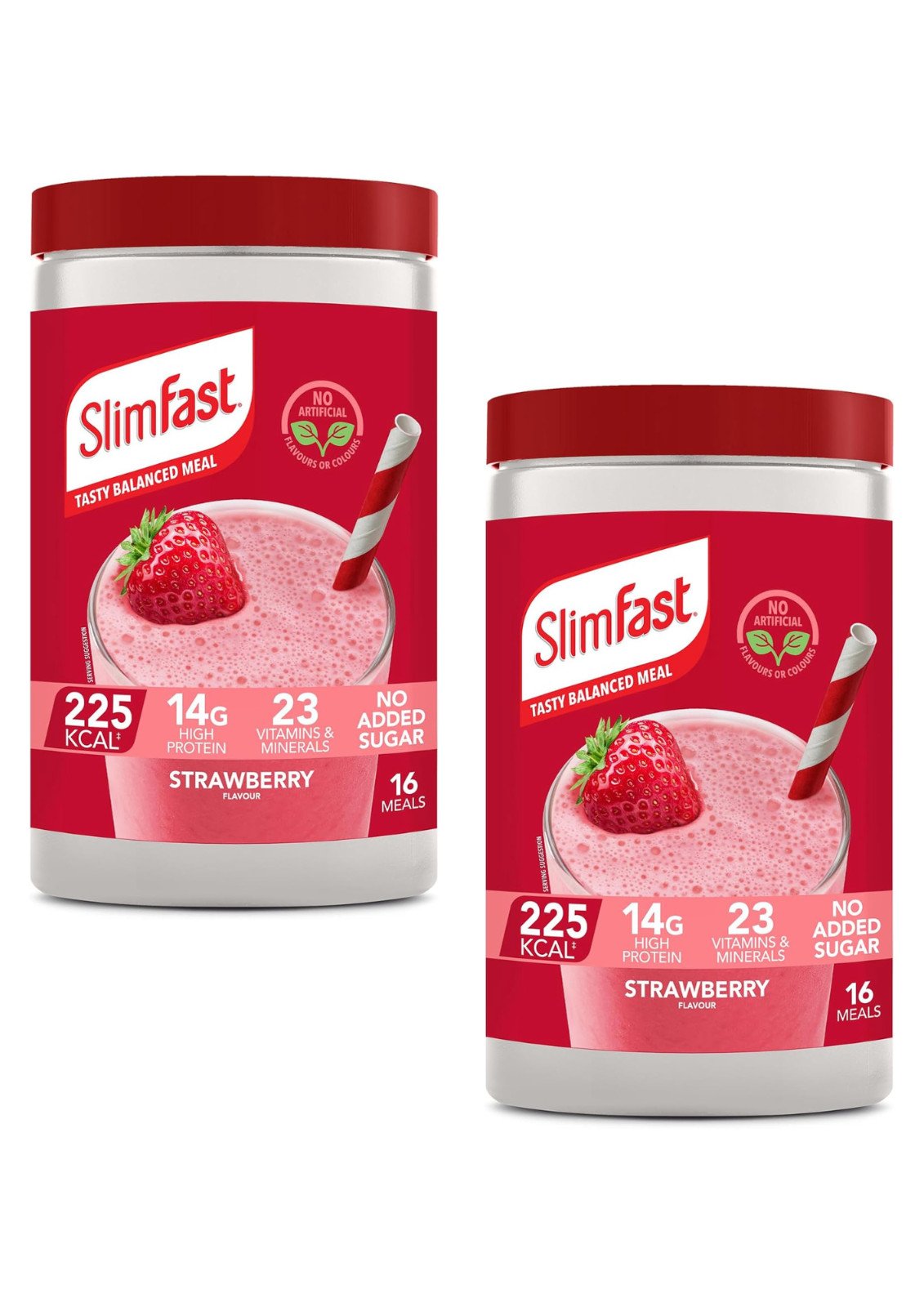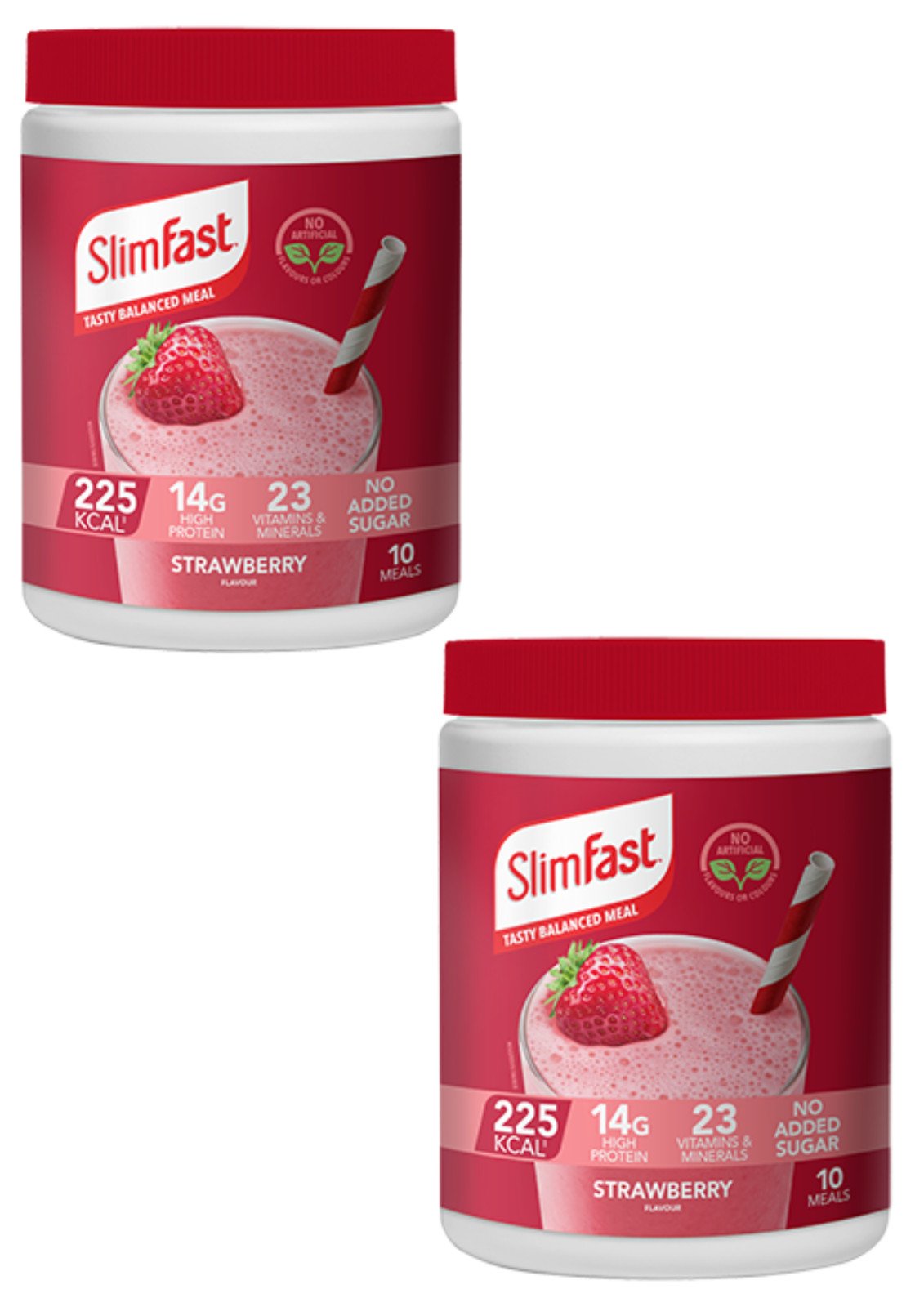 SlimFast Strawberry Flavour Shake Powder Balanced Meal Replacement 2 x 584g Tub