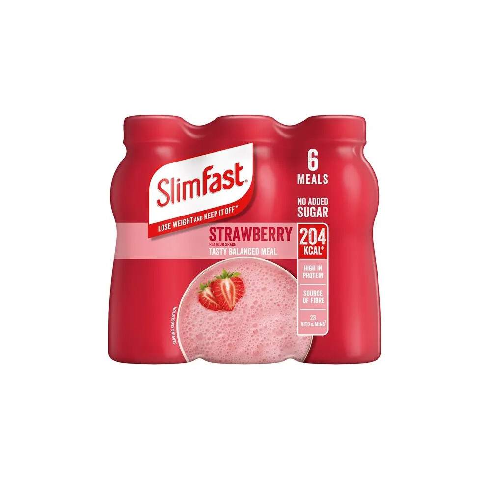 SlimFast Ready To Drink Shake, Strawberry Flavour, 6 x 325 ml Multipack