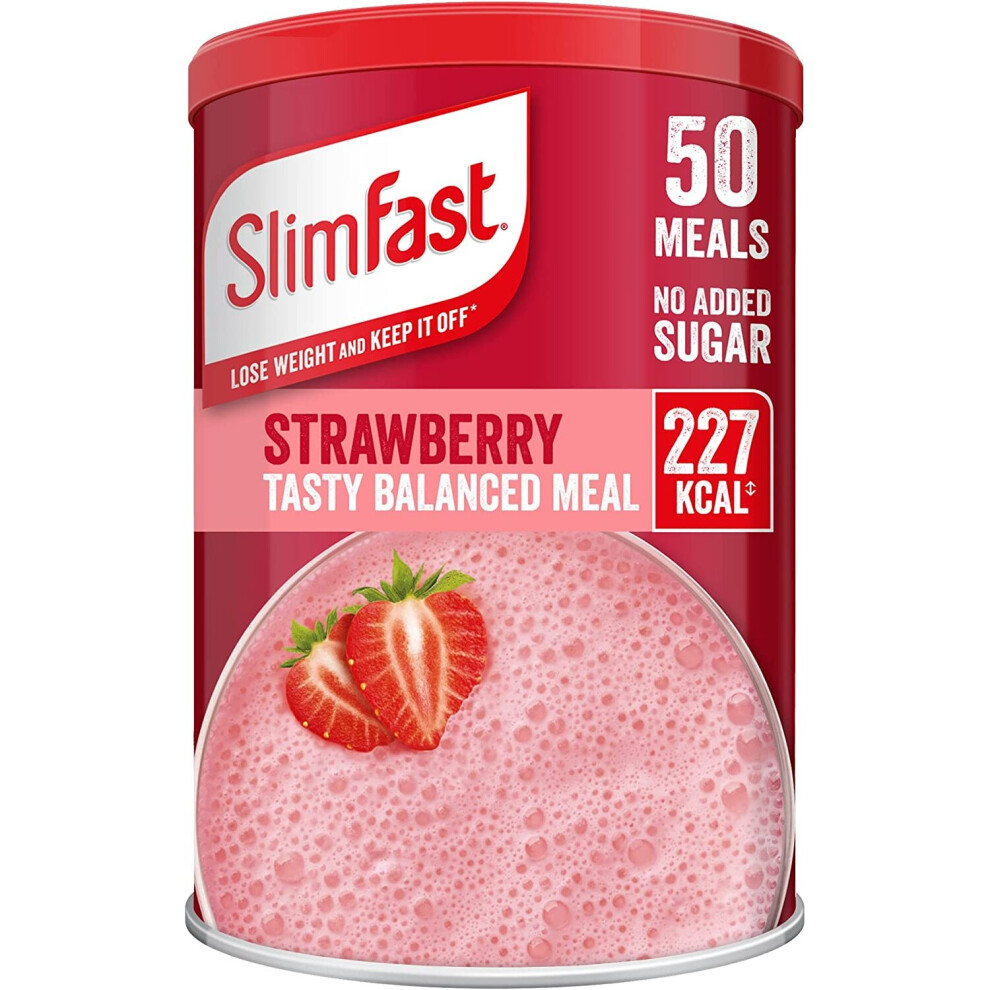 SlimFast Meal Replacement Shake for Weight Loss & Balanced Diet, Vitamins and Minerals, Low Calorie, High Protein, Strawberry Flavour, 50 servings, 1