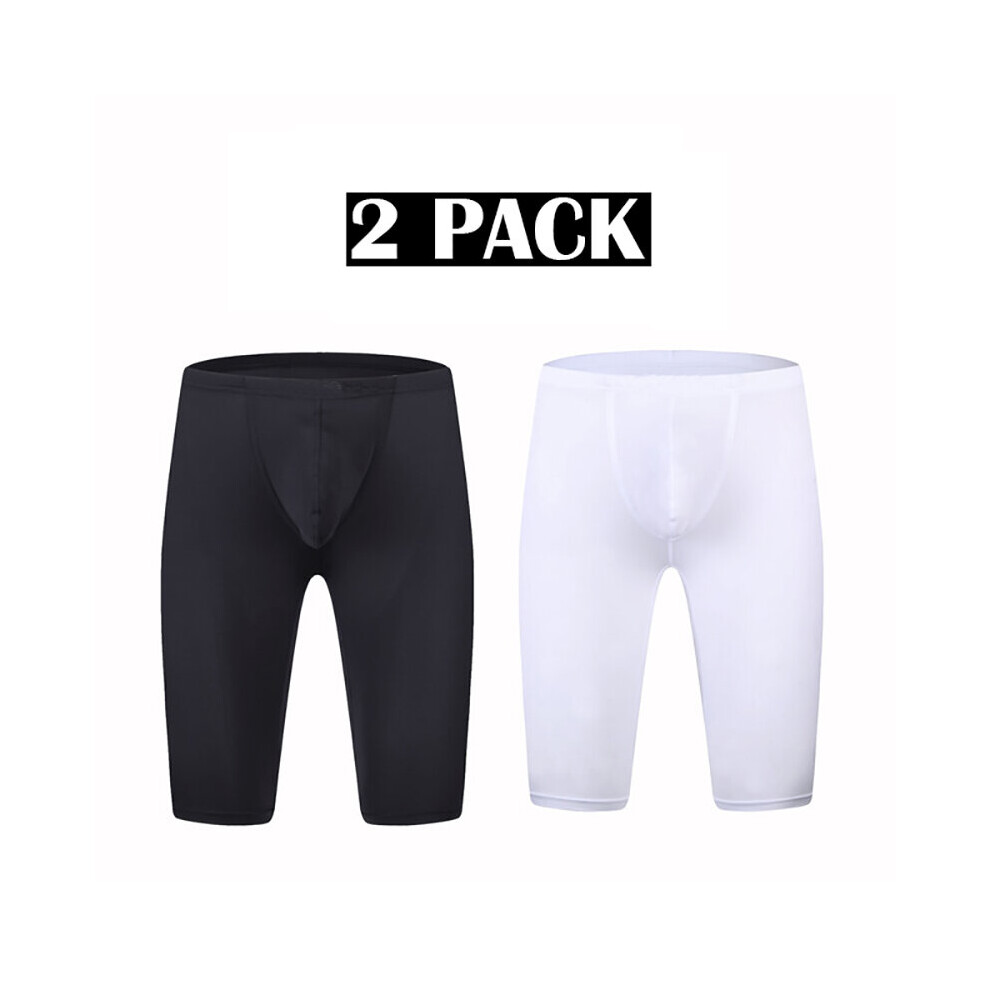 2PCS/Lots Men Long Boxer Shorts Ultra-thin Ice Silk Sleep Bottoms Pajama Slip Homme Fitness Underwear Summer Sleepwear Trousers